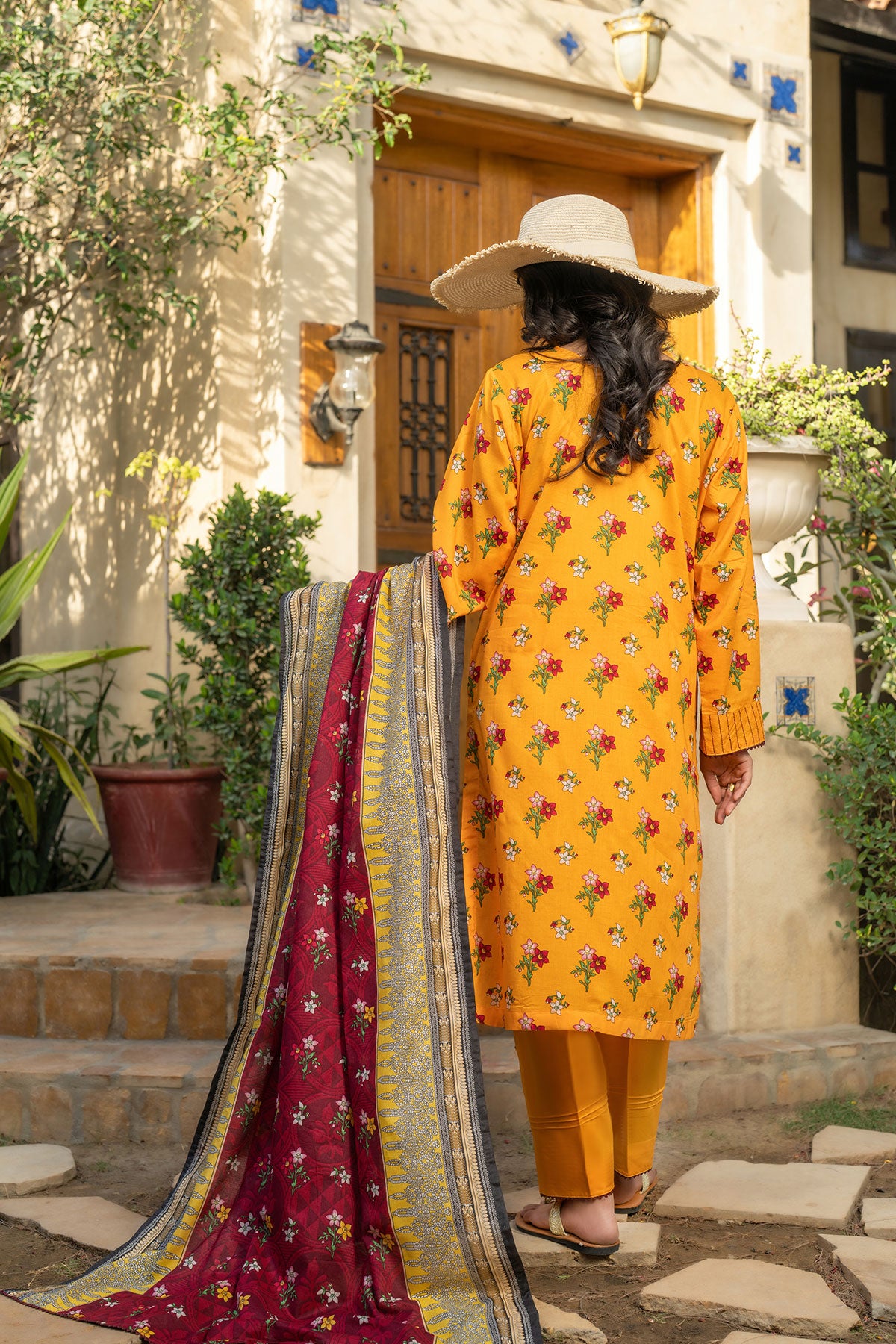 Elevate your style in this floral inspired unstitched lawn ensemble featuring a fancy printed lawn shirt, fancy printed lawn dupatta and cotton trouser.