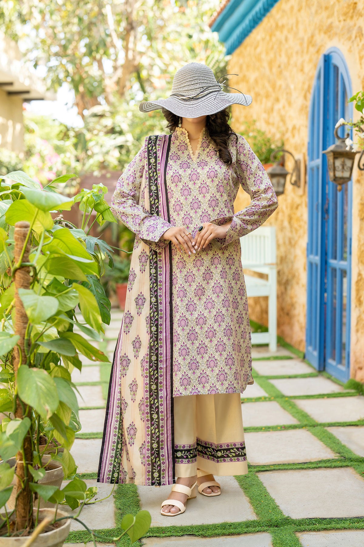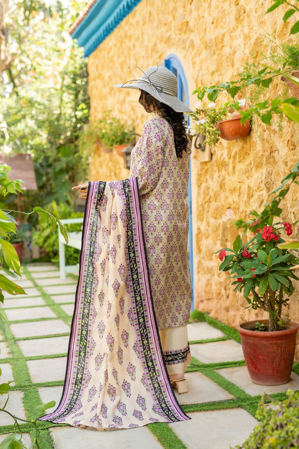 Embrace the summer fashion in this unstitched three-piece ensemble featuring a printed lawn shirt, printed lawn dupatta and cotton trouser.