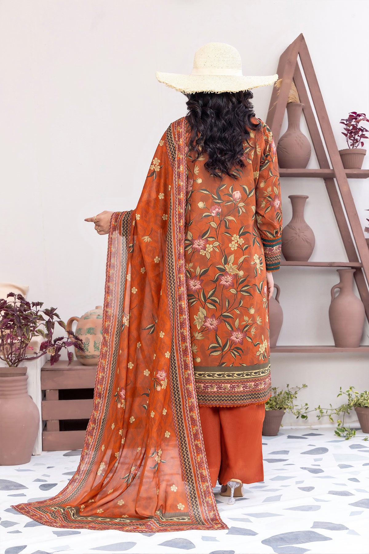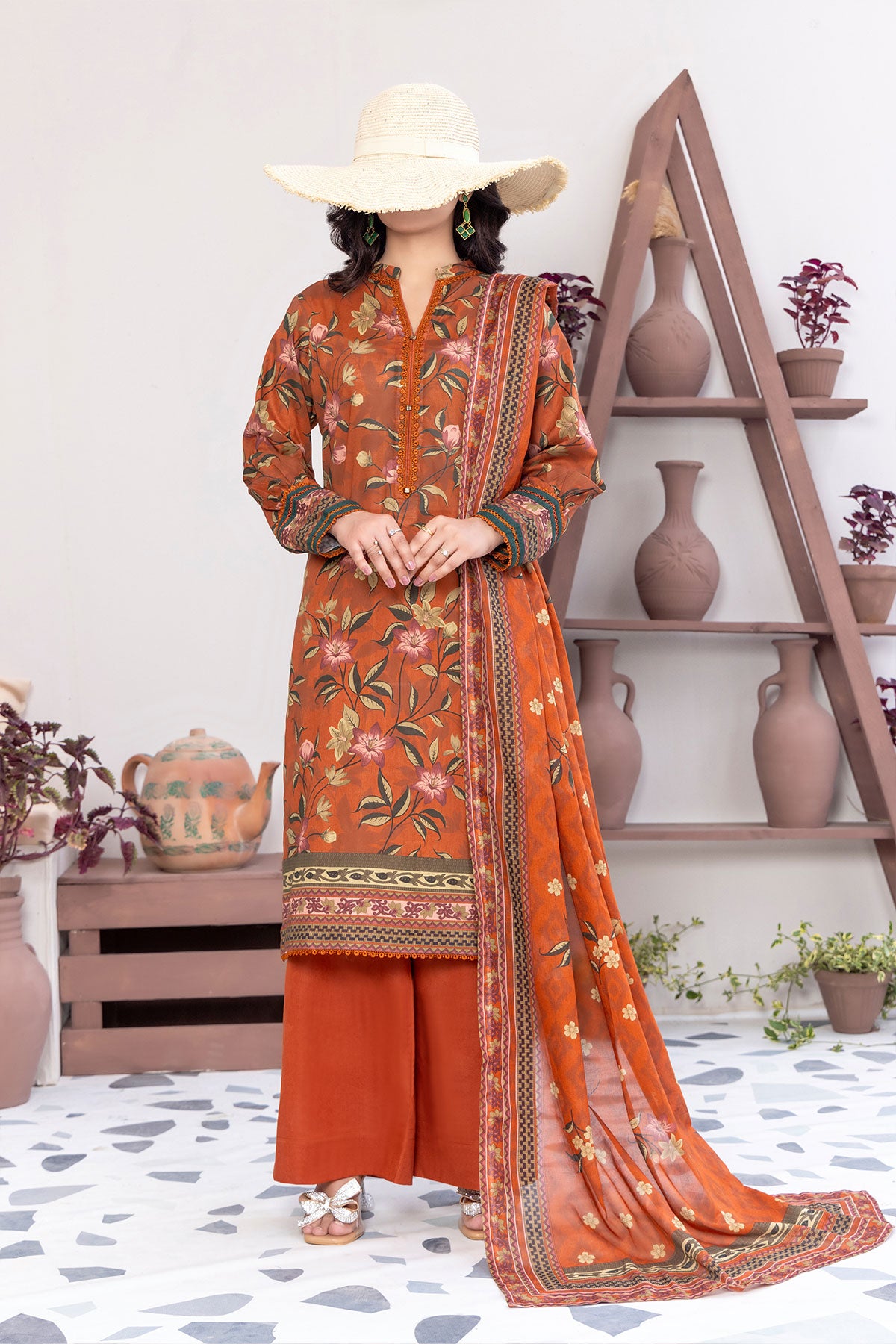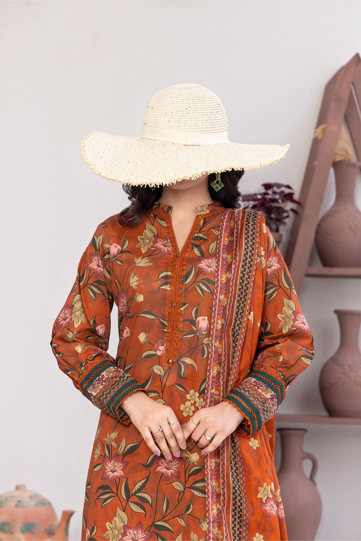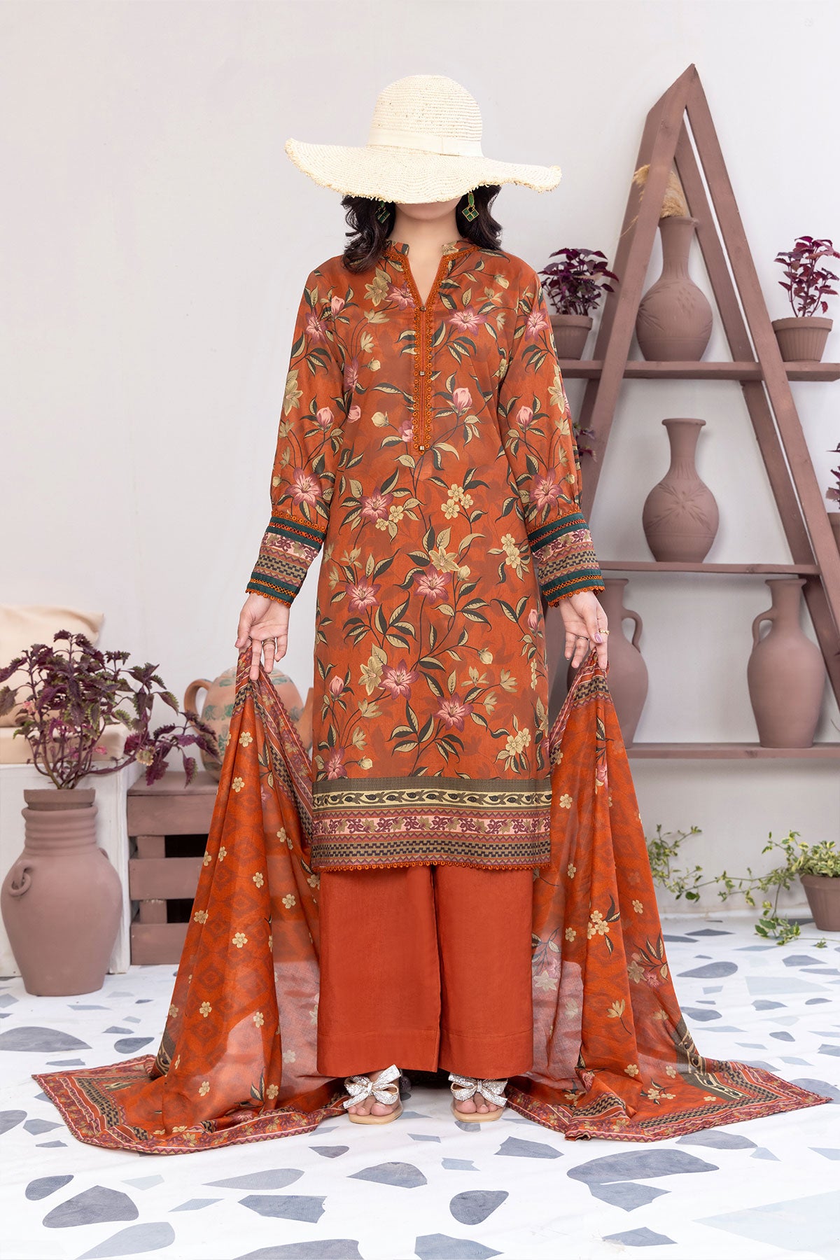 Stay elegant this season in this three-piece unstitched Premium printed lawn suit featuring a multihued floral print lawn shirt, printed lawn dupatta and cotton trouser.
