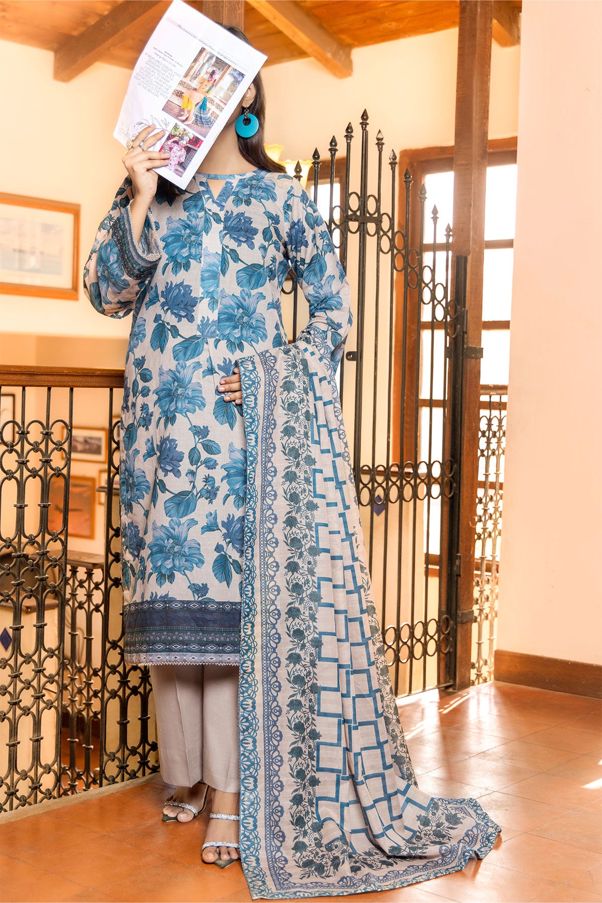 Look elegant in this floral printed unstitched ensemble, featuring a fancy printed lawn shirt, fancy printed dupatta and cotton trouser.